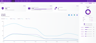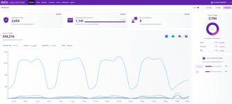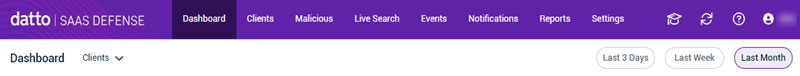The Datto SaaS Defense application color scheme has been updated. The colors of the user interface elements are now based on a purple color palette instead of blue, as shown in this Dashboard page example.![]()