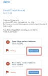With the Email Threat Report, you can automatically email a customized threat report to each client end user at specified intervals. The report lists the malicious email threats intended for the end user's inbox that Datto SaaS Defense has quarantined. The purpose of the report is to regularly notify the end user of the emails that have been quarantined for that end user.