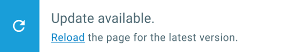 A new pop-up feature has been added to notify you when a new version of the application is available. Click Reload to refresh your browser and update to the latest version. You can do so at your convenience. The notification will stay on-screen until your browser has been refreshed.