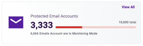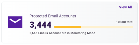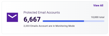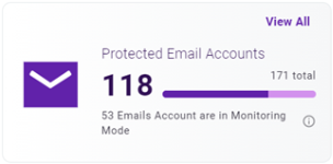 The Protected Email Accounts widget shows, from your total number of client email accounts, the number that are protected email accounts, meaning they are operating in Prevention Mode.