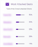 The Most Attacked Seats widget lists your five most attacked clients, perhaps indicating the need to investigate the clients' environment and security configurations. Ranking is based on clients with the highest percentage of seats subjected to an attack. For this widget, an attack includes malicious files or links or involves spoofing. It does not include spam. Filter selections you make apply to the results.![]()