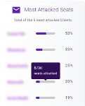 Hovering over a client's color bar displays the number of seats subjected to an attack from the client's total number of seats. In the example, 6 of the client's 30 seats, or 20% were subjected to an attack.