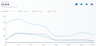 In our example, the widget shows that 67,818 scans were performed across the Microsoft 365 services for the seven selected clients during the last week.
