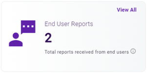 The End User Reports widget conveys the total number of threat incident reports submitted by your end users using the Datto SaaS Defense Report Threat Add-In and the Email Threat Report. This widget provides a great way to monitor and respond to end user feedback which leads to improved security performance for the end user.