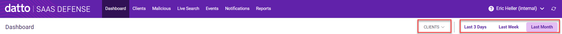 By default, the Dashboard displays the combined data for all of your clients. Using the Clients filter, you can display data for only the client or clients you select.