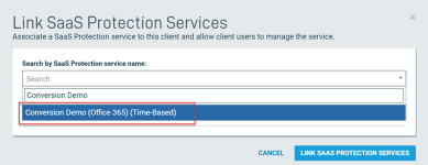 The service is added to the SaaS Protection Services section. - Activate SaaS Defense for the client. See the article Activating SaaS Defense for your eligible clients.