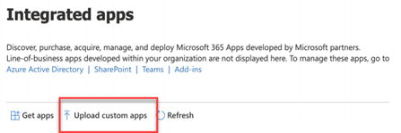 - On the Integrated Apps page, click Upload Custom Apps.