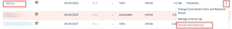 - Click the More menu at the end of the client's row and select Cancel Subscriptions.