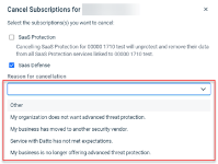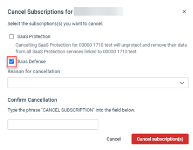 - In the Cancel Subscriptions for... modal, select the SaaS Defense check box.