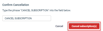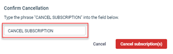 - In the text box indicated, type CANCEL SUBSCRIPTION.