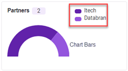 The charts on the Clients page provide a graphical representation of your environment data. In this example, the Partner menu was filtered to display data for only Itech and Databran.