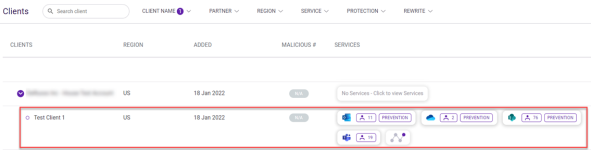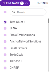 - The system updates the information displayed based on your selections. In this example, information for Test Client 1 is displayed exclusively because Test Client 1 was the only client selected in step 3.