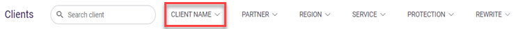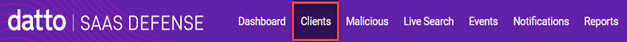NOTE The procedure illustrates filtering page results on the Clients page. You perform the same steps to filter results on the Malicious, and Events pages.