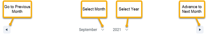 - If necessary, use the calendar navigation functionality to display the applicable month. If you previously filtered threat results using the calendar within this session, those previous selections are still displayed.