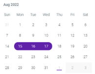 - By default, the end date is the same as the start date you selected. To select a different end date, click a date on the calendar. The date range is selected. Go to step 3.