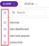 Click Client and select the checkbox for each desired client. Or, to search the emails of all of your clients' end users, select the top check box (next to the Search box).